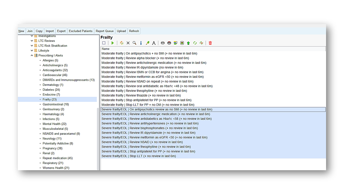 These can be found in the following folders: Repeat medication, Frailty or Potentially Addictive.