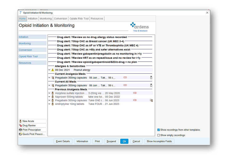 The Opioid Initiation & Monitoring template has recently been reviewed and helps you to manage the process of initiating, monitoring, and converting opioids for your patients: