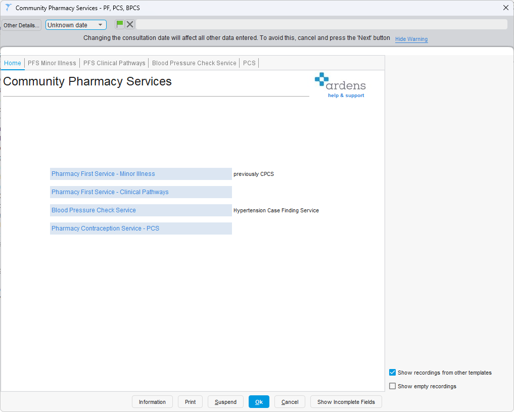 Alternatively, the Community Pharmacy Services template could be added to your F12 Favourite screen for quick access.